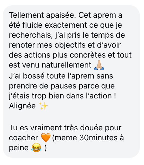 Merci encore Manon pour tes bons conseils et ta joie de vivre !✨😊 Je recommande ton coaching à toutes personnes dans les besoins. 💯